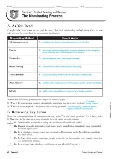 Read Section 1 The Nominating Process Answers Epub